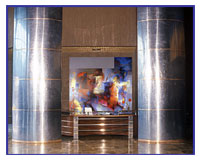 cielos falsos de aluminio pintados al horno marca HunterDouglas, con dos baños